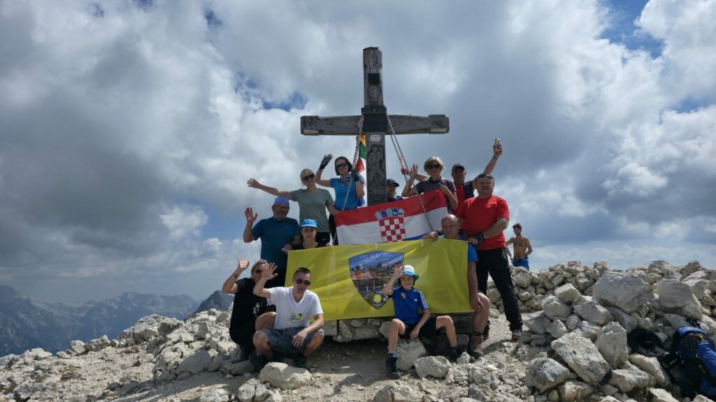 Kad smo se napokon popeli na vrh, širok i travnat vršni plato s prekrasnim pogledom na Julijske Alpe i Dolomite našoj sreći nije bilo kraja. Istim putem smo se i spuštali.