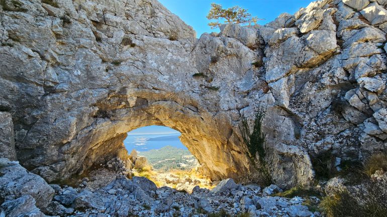 Biokovsko oko ili Šuplja stina prirodni je otvor u stijeni kroz koji se pruža fantastičan pogled na Brela, otok Brač i prekrasno plavo more. Lako je dostupna i nalazi se između Nevistine stine i planinarskog skloništa Pakline.