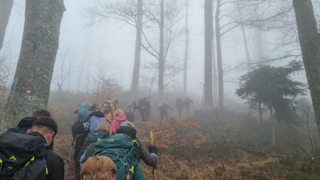 Nakon dužeg odmora polako krečeno prema samom vrhu Sljeme, uz maglu stižemo taman ispod