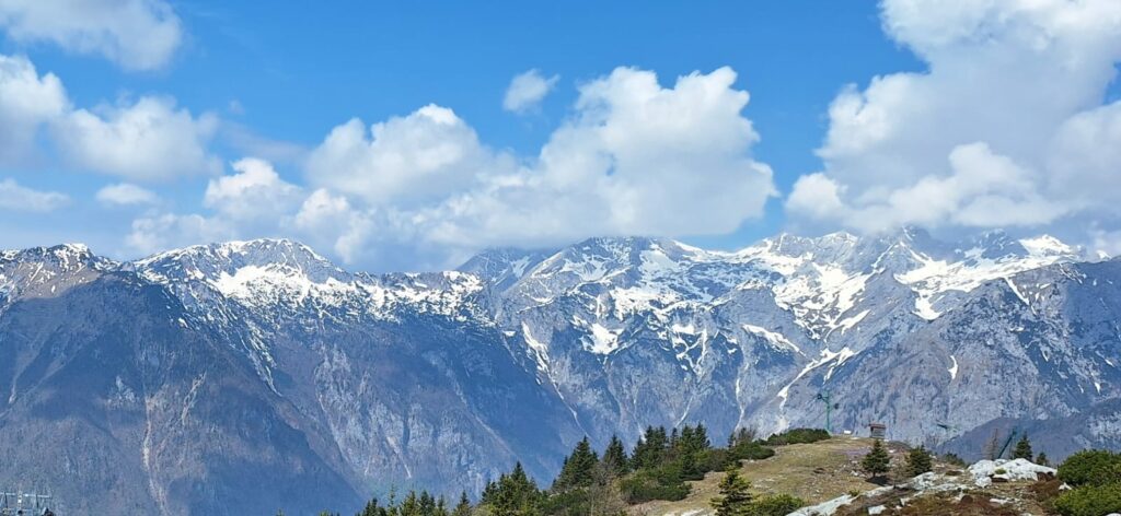 Samim dolaskom podno Velike Planine već smo bili ushićeni prizorima Alpa i ogromne strmine po kojoj se žičarom vozi do vidljivog vrha na 1400 mnv, od kojeg se dalje kreće do još većeg vrha na 1606 mnv sedežnicama.
