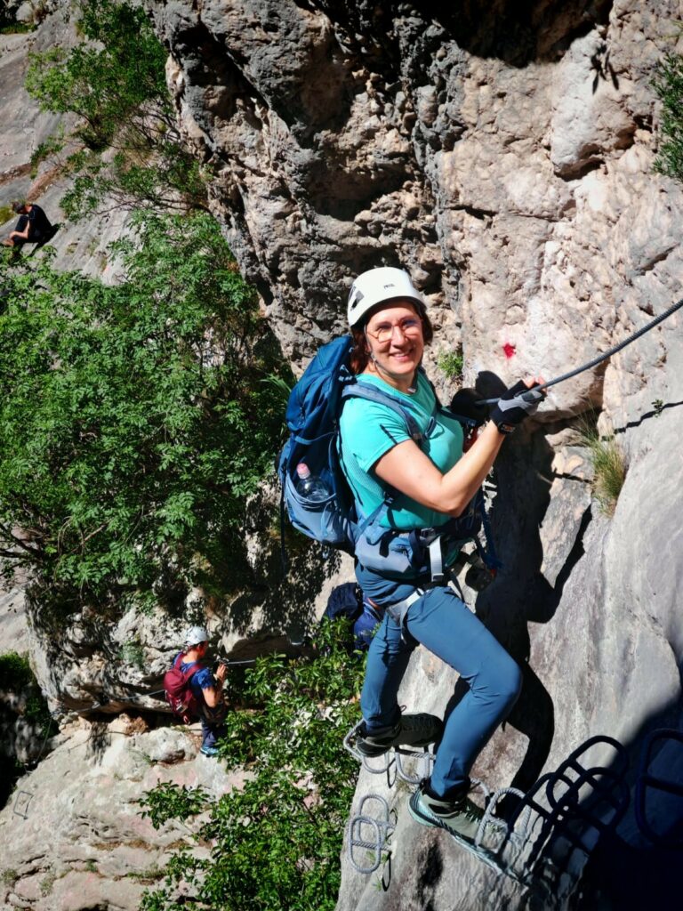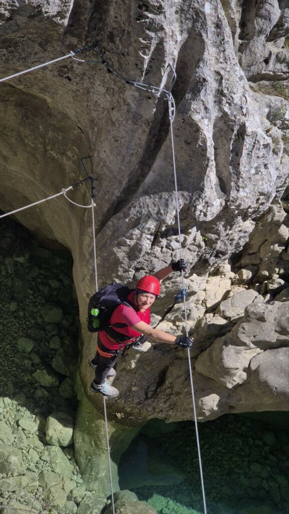 Dok smo se osigurani penjali uz stijenu, svaki korak tražio je koncentraciju, ali i hrabrost. Ispod nas se prostiralo suho korito, što je cijelom prizoru davalo poseban, pomalo surov, ali fascinantan prizor.