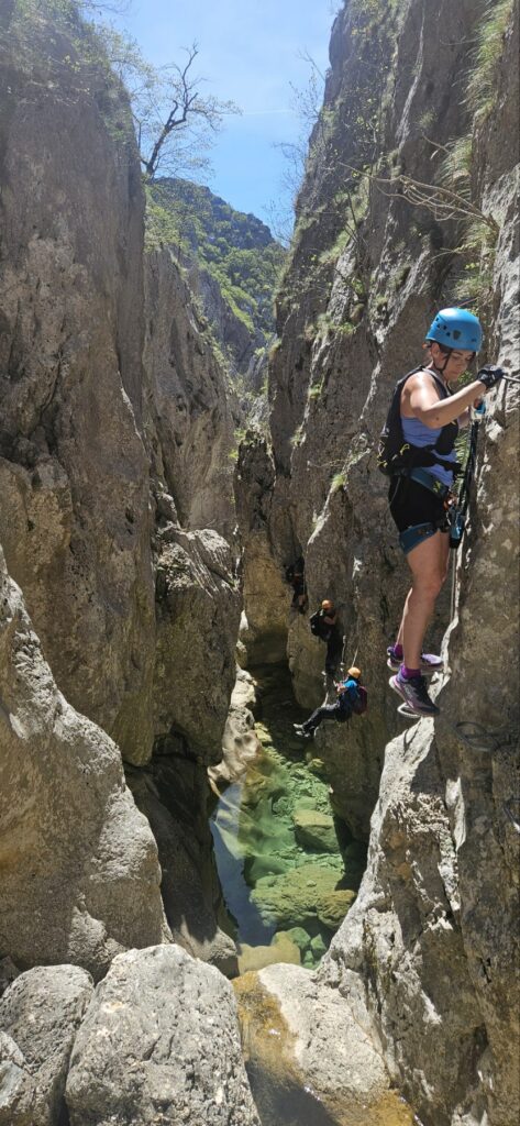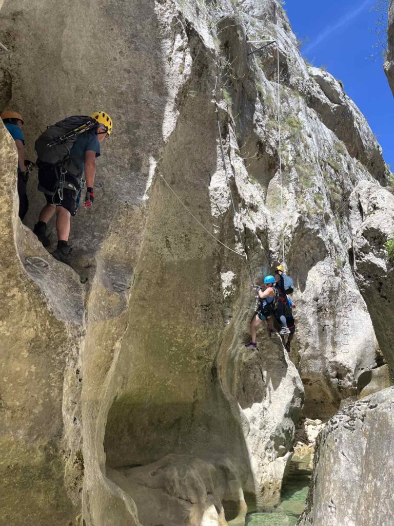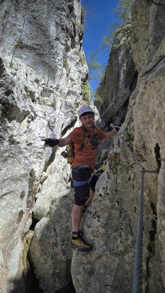S druge strane, i ferata ekipa imala je svoju dozu adrenalina provlačenje kroz uske tunele, hodanje uz sam rub litice, prelazak preko mostića i sajli iznad korita.