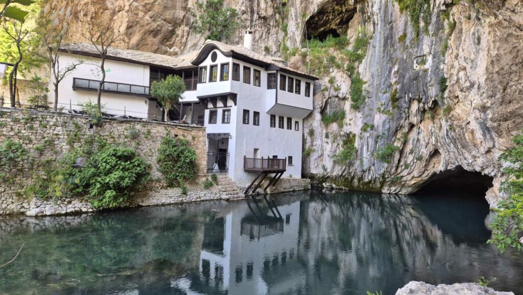 Izvor rijeke Bune nalazi se u dubini pećine smještene u impresivnim stijenama visokim oko 200 metara. Riječ je o jednom od najvećih izvora u Europi, gdje ogromna količina vode izvire odjednom stvarajući prizor koji ostavlja bez daha. Plavozelena rijeka, okružena šumom i stijenama, djeluje umirujuće i gotovo nestvarno. Voda je ledena i kristalno čista, a fascinantna je činjenica da čak dvadesetak kilometara prolazi pod zemljom prije nego što izbije na površinu. Oduševljeni prirodom, upijali smo svaki trenutak tog posebnog mjesta.