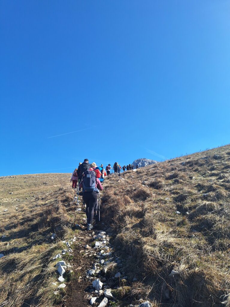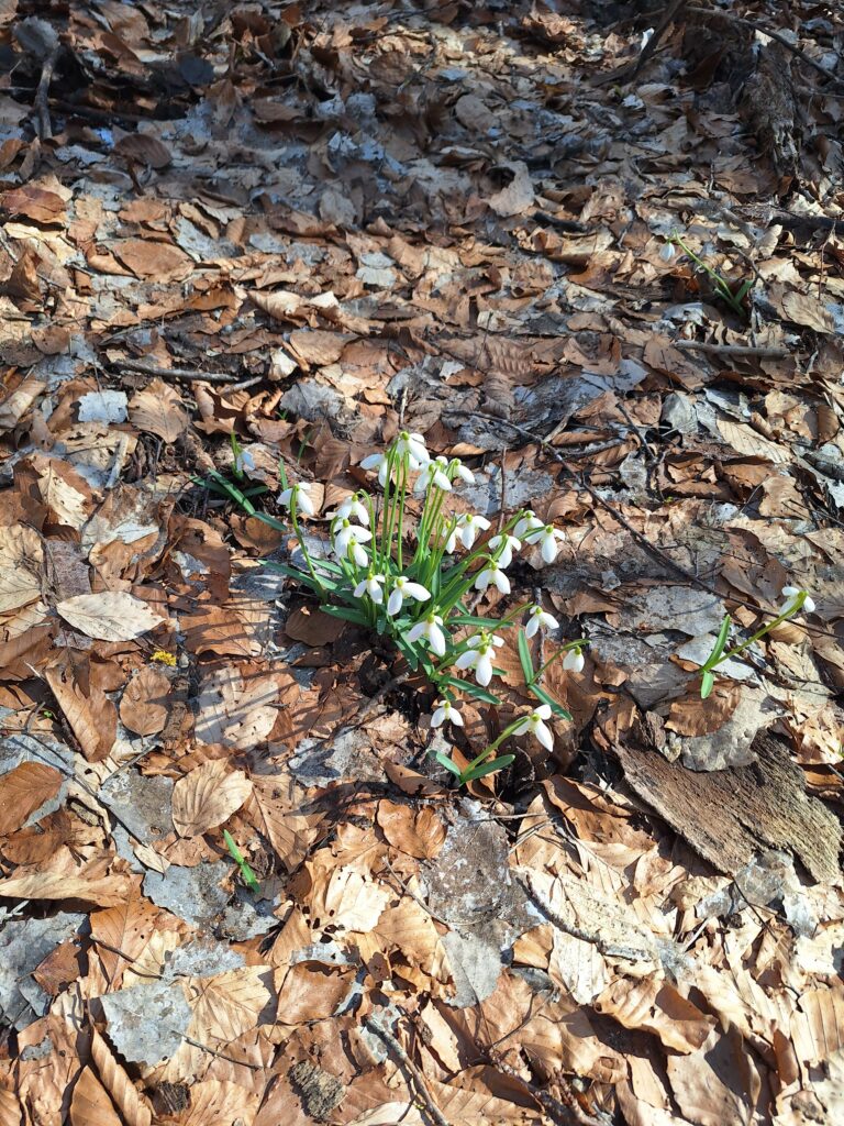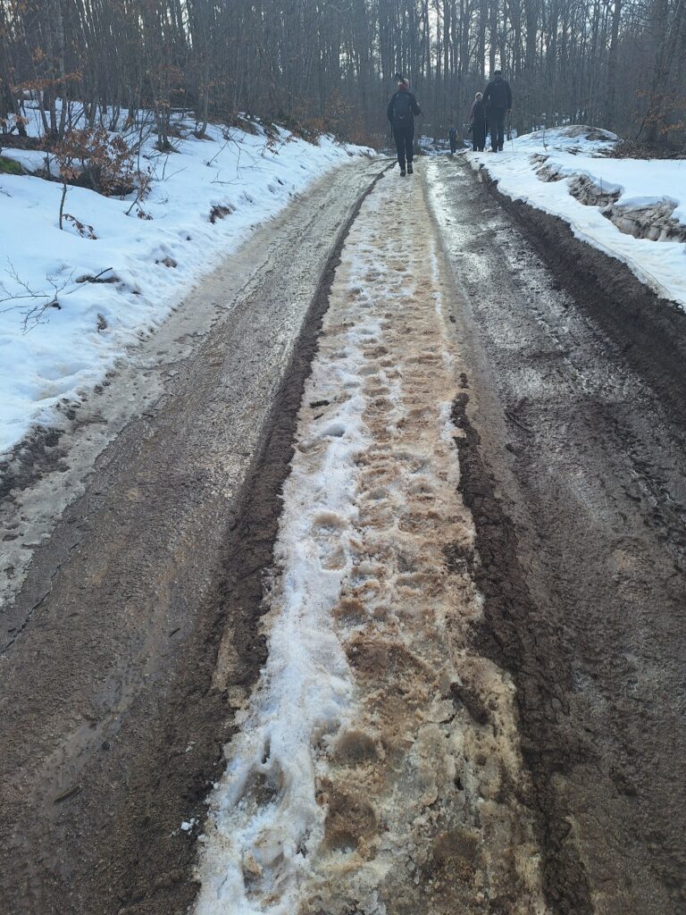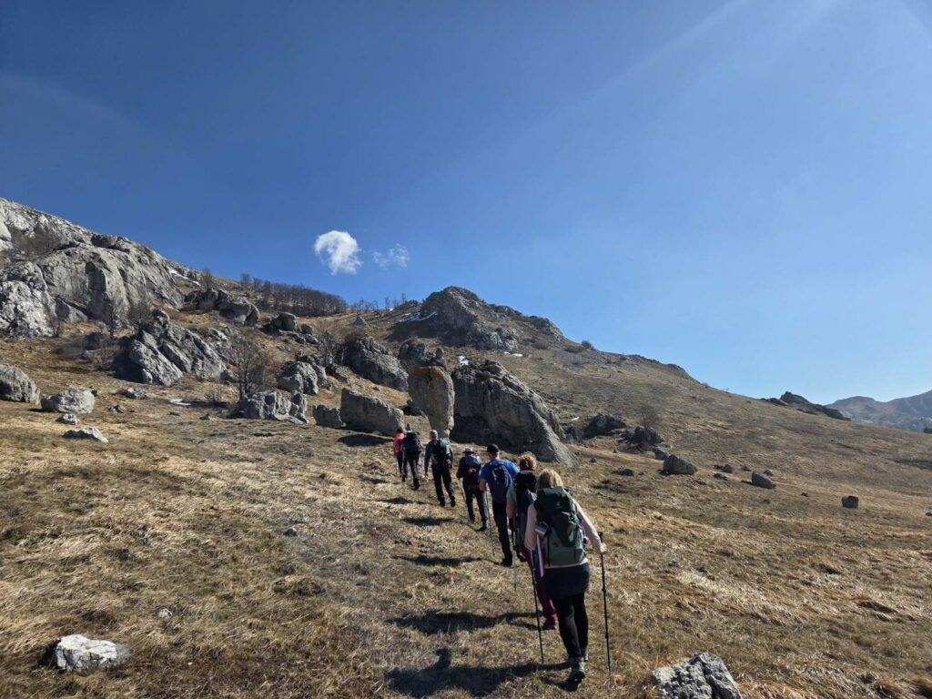 Kako staza nije u potpunosti markirana, čak i za naše iskusne vodiče, pomalo je postala izazovna, a posebno kad smo ušli u područje gdje se signal povremeno gubio. Putem smo prolazili šumama i livadama posutima svježe procvjetanim vjesnicima proljeća, uz poneku nakupinu snijega.